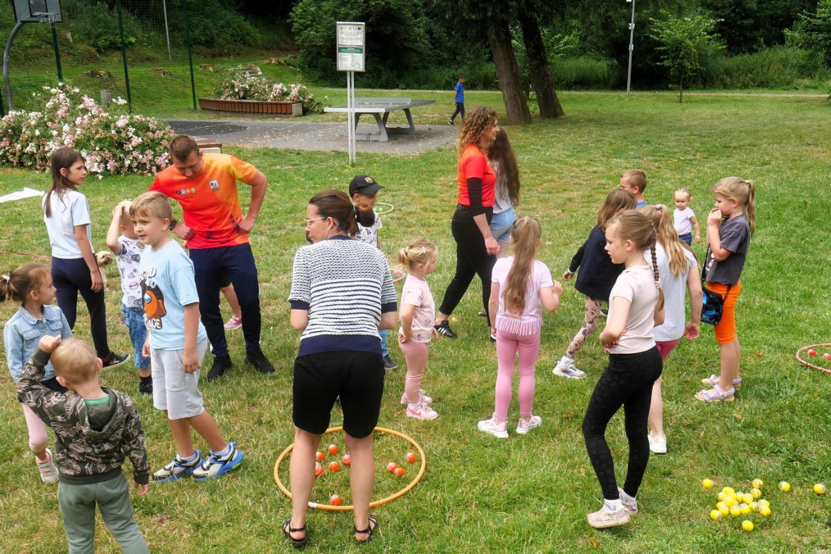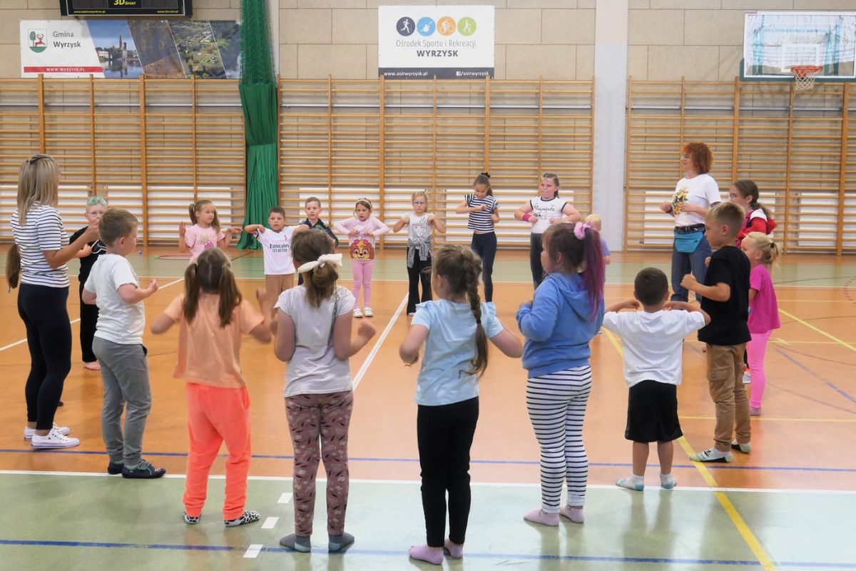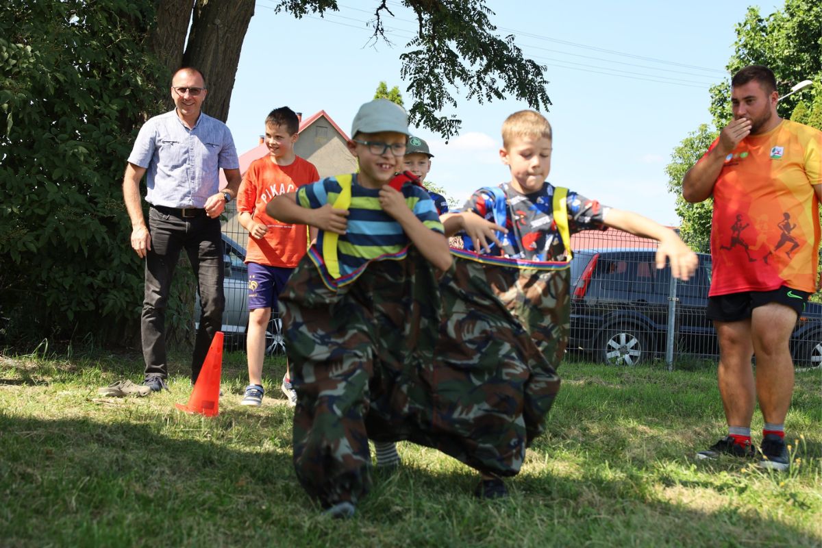 Ale to nie wszystko! Wakacyjna przygoda przeniosła się również do sołectw na terenie Gminy Wyrzysk, gdzie pracownicy Miejsko-Gminnego Ośrodka Kultury wspólnie z pracownikami Ośrodka Sportu i Rekreacji w Wyrzysku podczas spotkań pod nazwą „Kultura (nie) fizyczna” zapewnili najmłodszym liczne atrakcje: wspólne tańce, wesołe zabawy, oraz mnóstwo konkurencji sportowych. Biegi, gry ruchowe czy proste zawody sprawnościowe wywołały ogromne emocje – zarówno u dzieci, jak i kibicujących im rodziców. Ważnym elementem spotkań była integracja – muzyka , śmiech i wspólna zabawa jednoczyły mieszkańców oraz wzmacniały więzi sąsiedzkie. Podczas tych spotkań atmosfera była pełna energii, radości i dobrej zabawy. Można było zauważyć, że dzieci świetnie się bawią, a mieszkańcy sołectw z chęcią wspierają takie inicjatywy.