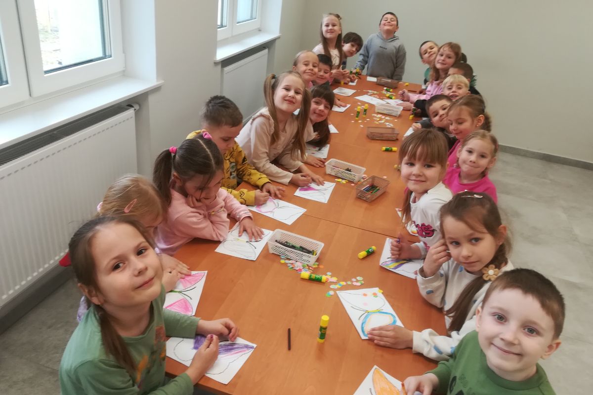 Przedszkolaki z zaciekawieniem oglądały nowe miejsce osieckiej biblioteki i ochoczo dzieliły się swoimi wrażeniami. Największe jednak zadowolenie wzbudziła kolorowa przestrzeń, w której znajdowała się literatura dla dzieci. Tam przedszkolaki wysłuchały kilku utworów literackich zaproponowanych przez bibliotekarza. Teksty dotyczyły wiosny. W związku z tym zawiązała się interesująca pogadanka o oznakach bieżącej pory roku. Dzieci umiejętnie wymieniały, po czym poznać, że przyszła wiosna. W ramach wiosennego spotkania w bibliotece przedszkolaki wykonały kolorowe prace plastyczne oraz wspólnie zatańczyły do piosenki o wiośnie i zajączku. Nie zabrakło też przeglądania przez dzieci bogatej literatury dla najmłodszych czytelników.